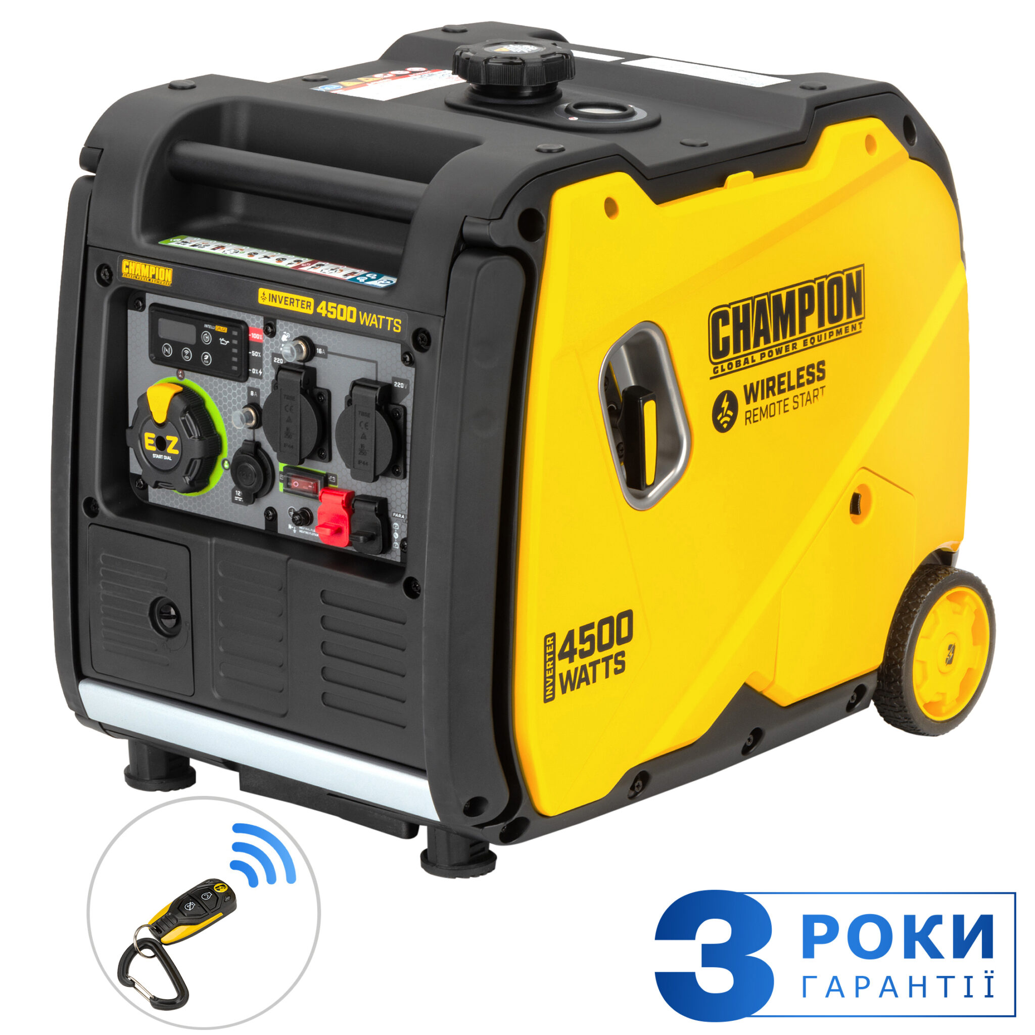 Інверторний генератор Champion 4500 з дистанційним запуском – це ідеальний вибір для тих, хто цінує зручність та комфорт у використанні.